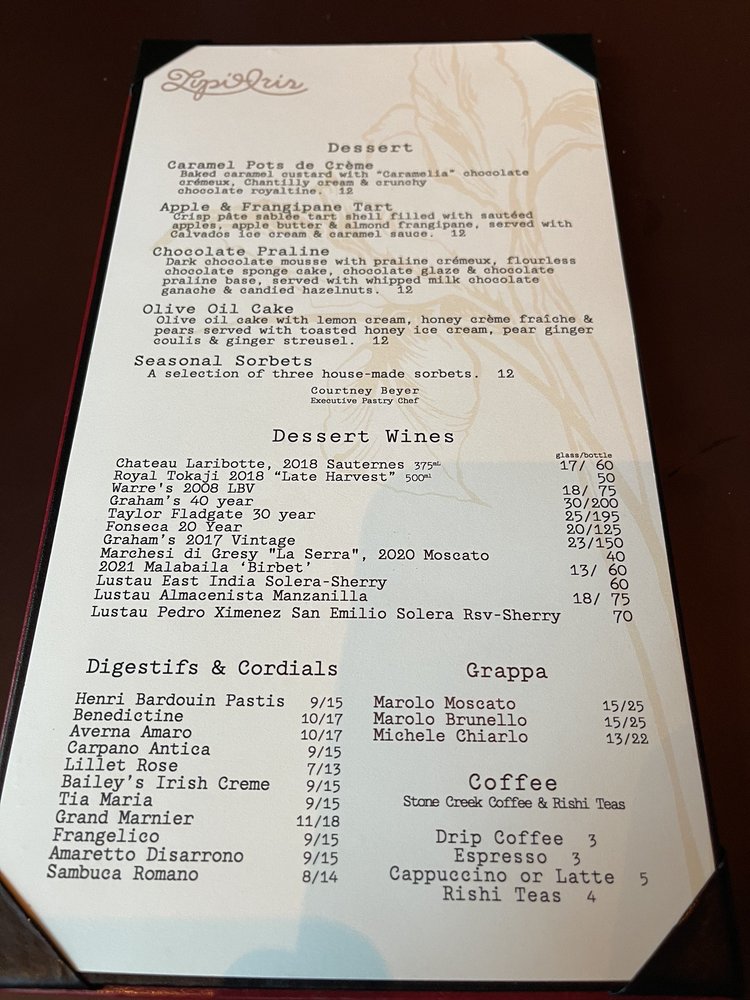 Lupi & Iris is a Mediterranean and Italian wine bar located in Milwaukee, WI. Known for its trendy, intimate, and classy ambiance, this restaurant offers a wide range of amenities such as outdoor seating, garage parking, and free Wi-Fi. The menu features a variety of delicious dishes, including seared sea scallops, Cavatelli con Ragu, and baked Mediterranean Sea Bass. With highly skilled bartenders and exceptional customer service, Lupi & Iris provides a memorable dining experience. Chef Adam Seigel's award-winning cuisine from the French & Italian Riviera is a highlight, along with the extensive wine selection. Whether you're celebrating a special occasion or looking for a romantic evening out, Lupi & Iris is the perfect destination for a fine dining experience with impeccable attention to detail.